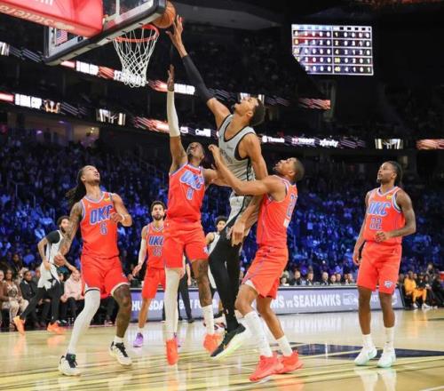 末節決戰進入白熱化纏鬥。馬刺開局取得6分領先,雷霆則靠華萊士和卡魯索的三分追平比分,雙方展開拉鋸戰。末段雙方幾乎交替領先,分差在一球之內懸念留到最後,決勝時刻馬刺這邊瓦塞爾和文班亞馬聯袂搶分幫助球隊拿到4分優勢進入讀秒奠定勝局。最終,馬刺力克雷霆,終結後者16連勝的同時殺入NBA杯決賽!
