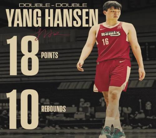 楊瀚森在這兩場比賽裏表現都還不錯,首戰18分10籃板4助攻,次戰14分6籃板1助攻1搶斷。