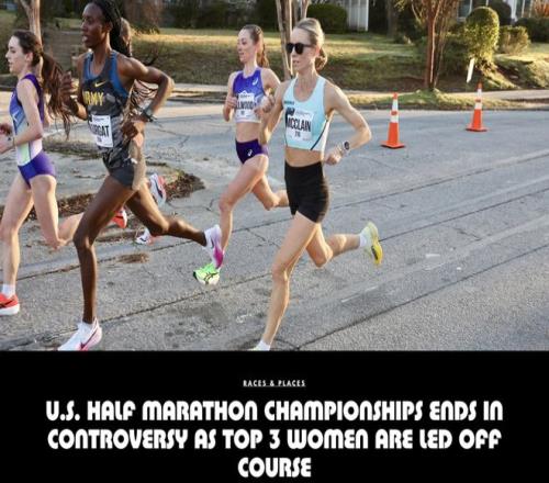 上個周末,美國半程馬拉鬆錦標賽在亞特蘭大舉行。據美國跑步媒體《Runner’s World》報道,在女子組的比賽最後階段,由於賽事主辦方的失誤,比賽現場一度出現混亂。賽事官方引導車在距離終點處還有大約3公裏的位置開始偏離賽道,導致領先集團的三位女選手多跑了超過800米的距離,最終都無緣領獎台。