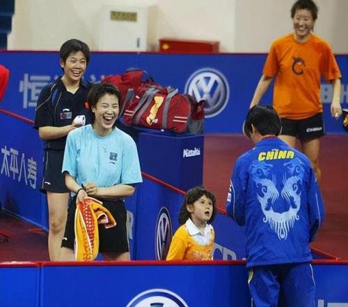 譚文玲的女兒蒙法蒂尼繼承了她的乒乓球天賦。值得一提的是,2005年世乒賽期間,譚文玲帶著4歲的女兒參加比賽。蒙法蒂尼又萌又可愛,吸引了中國女乒將士們的關注。陸元盛指導和萌娃聊天,旁邊的王楠笑得很開心。