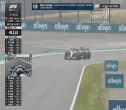 第11圈的16、17號組合彎,安東內利依靠130r尾端抽頭,幾乎使用和拉塞爾一樣的手法完成對諾裏斯的超越升至第4!隨後他立刻甩開諾裏斯,將差距拉開到1秒以上!