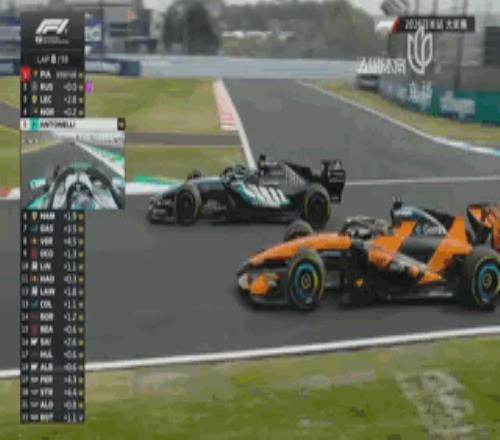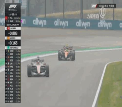 皮亞斯特裏與拉塞爾形成了第一集團,而在他們身後,勒克萊爾、諾裏斯和安東內利三人之間的差距都在1秒以內,相互都在尋求超車機會!
