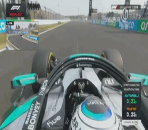 五盞紅燈熄滅,比賽正式開始!安東內利的發車極其糟糕,瞬間被5台賽車超越跌至第6,隊友拉塞爾的起步也堪稱災難,被身後勒克萊爾超越後跌落不少位置!皮亞斯特裏反應神速,絲滑起步之後一躍升至第1!勒克萊爾排名第2!