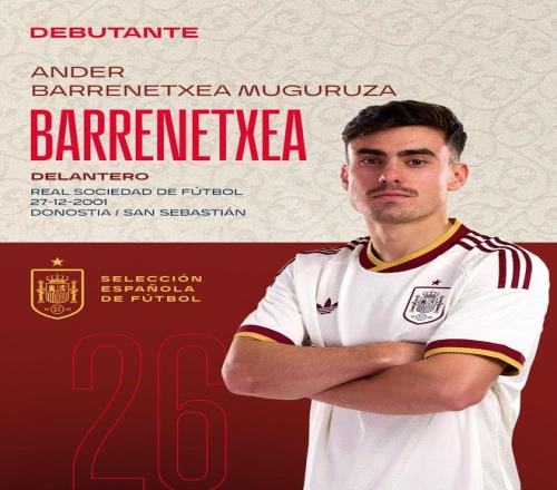 此役對陣埃及隊,巴雷內切亞首發出戰,這位24歲的皇家社會前鋒迎來西班牙國家隊生涯首秀。