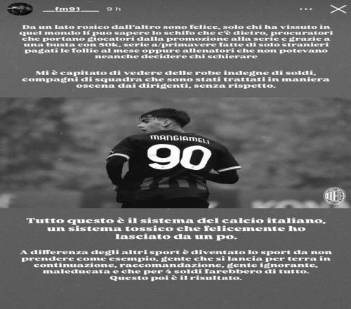 近日,在意大利隊不敵波黑無緣世界杯後,前米蘭青訓小將曼賈梅利在社媒發文,抨擊意大利足球圈運作之“黑暗”,引發廣泛關注。