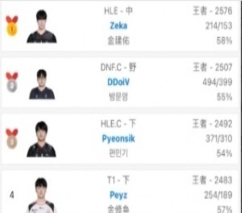 體育資訊4月9日稱 跟韓服排位統計小程序顯示,Zeka再次登頂韓服第一。