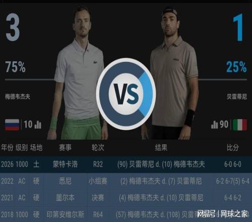 對於梅德韋傑夫而言,這場失利隻是他本賽季第三次吞蛋的縮影。2026賽季以來,梅德韋傑夫已三次被對手打出6-0的比分:澳網麵對勒納錢,邁阿密麵對塞倫多洛,如今在蒙特卡洛麵對貝雷蒂尼。而在此前的2021年至2025年間,梅德韋傑夫從未在任何比賽中輸過6-0。