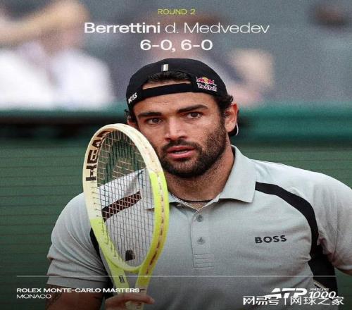 蒙特卡洛大師賽第二輪,持外卡出戰的意大利人貝雷蒂尼僅用時49分鍾便以6-0 6-0送雙蛋血洗前美網冠軍、現世界第十梅德韋傑夫,職業生涯首勝苦主,強勢挺進16強。