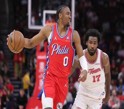 Adem Bona對位國家隊隊友申京還算體麵,但火箭首節35分的氣勢根本壓不住。Nick Nurse第二節甚至派上Dominick Barlow打中鋒——Andre Drummond的缺席讓內線輪換捉襟見肘。現在43勝37負的76人,隻能祈禱猛龍明天別贏熱火。